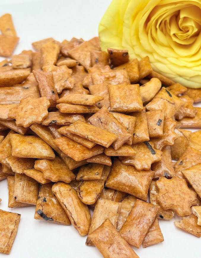Our Tomoe Arare is a delicious snack of soy sauce flavored Japanese rice crackers in a combination of fun shapes. Try our Li Hing Arare for the same great taste with an added Li Hing punch!