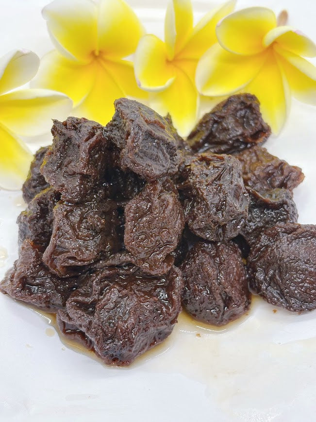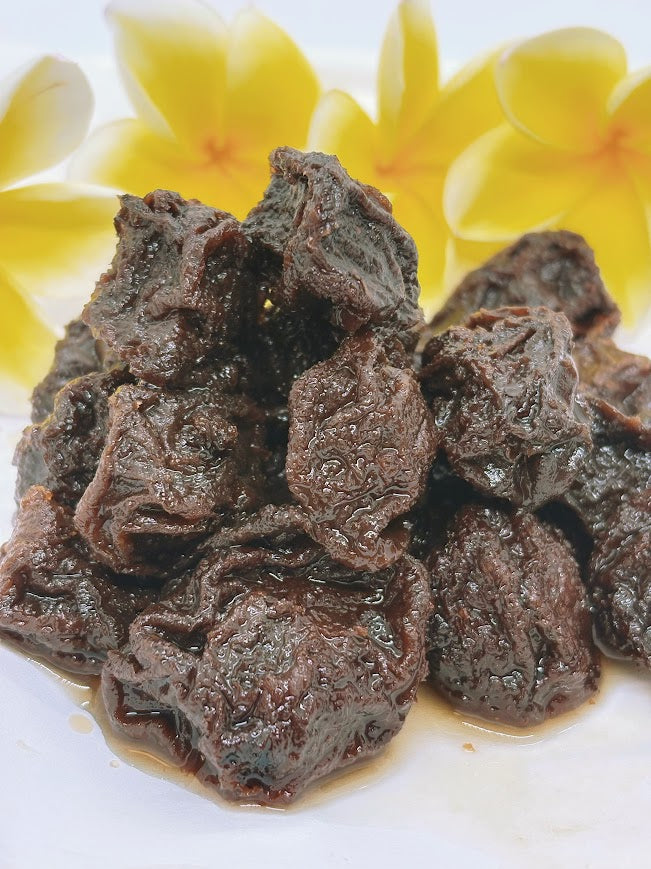 Wet Salty See Mui is the original Salty See Mui soaked in a diluted sugar sauce for a milder and less salty flavor.